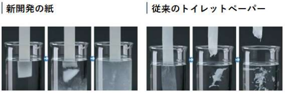 市販されているトイレットペーパーや、トイレに流せるティッシュ等と比較しても、その差がはっきりと分かります。